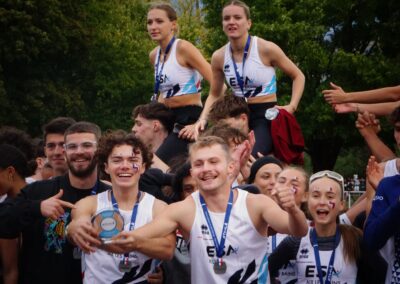 Dans la catégorie reine des U23, les spécialistes de la marche athlétique de l’Entente Savoie plaçaient d’entrée leur équipe sur les bons rails. Ange Tirabassi dominait le 5000m en 23’28’’86 à quelques secondes de son record personnel du mois de juin ; un record personnel que Léonie Iund améliorait en remportant le 3000m marche en 14’13’’46 (901 points). Le club savoyard allaient ensuite conserver la tête des opérations pendant une grande partie du match avec notamment l’investissement de têtes d’affiche comme Charlotte Sorin avec ses 64‘’94 au 400m haies et 1m73 en hauteur (955 points), que l’on retrouvait aussi en fin de match pour participer à la victoire du relais 4x200m féminin. Même cas de figure pour Loris Brochier avec 3 participations au triple saut (13m46, record personnel), au 200m (22’’68) et comme dernier relayeur au 4x200m qui se classe 3e en 1’31’’39.