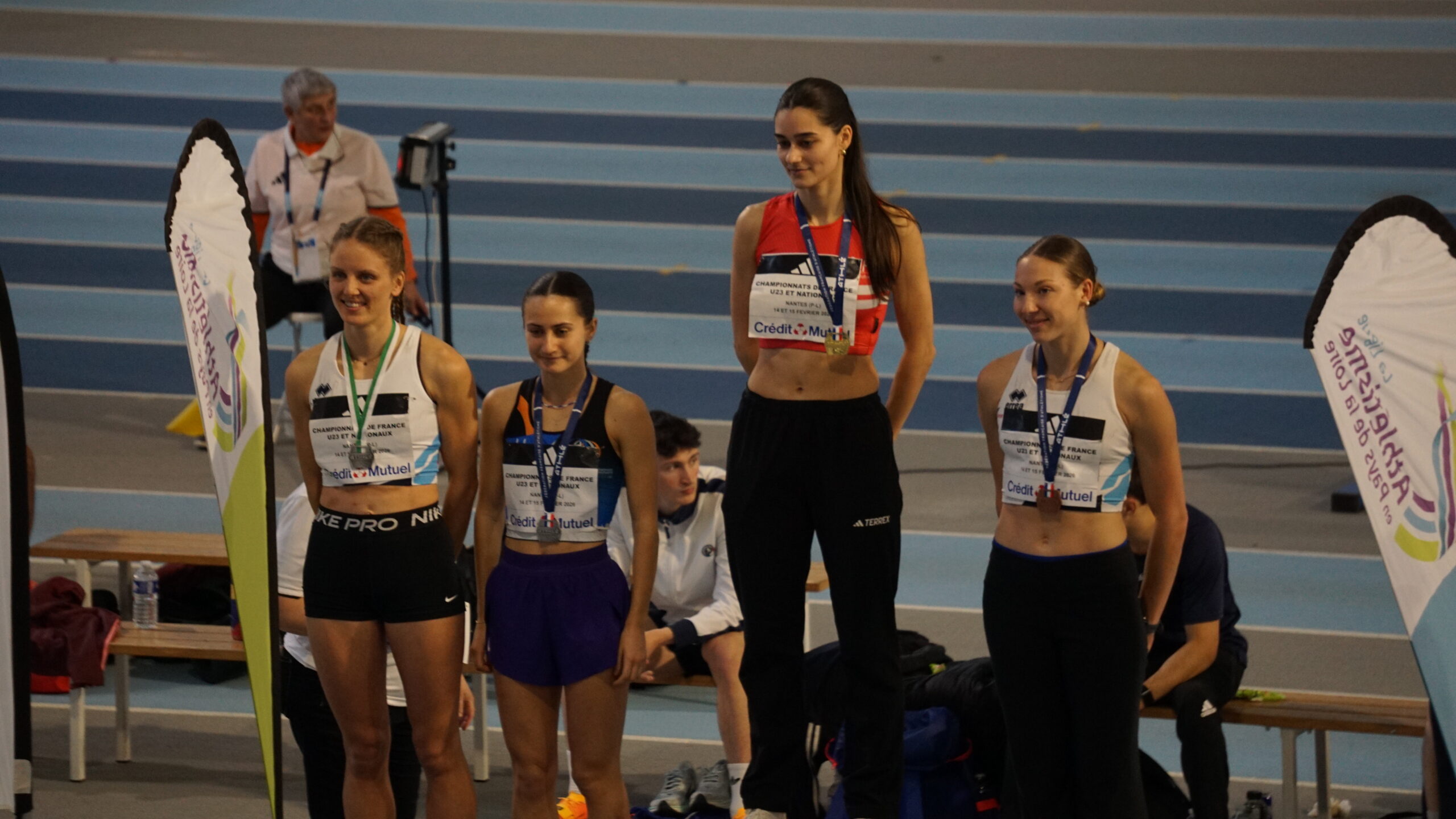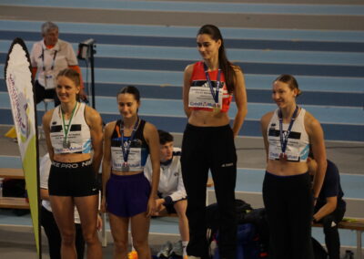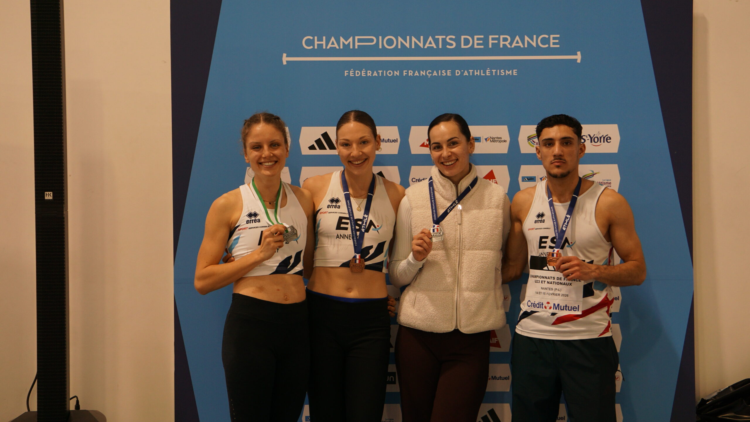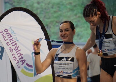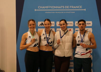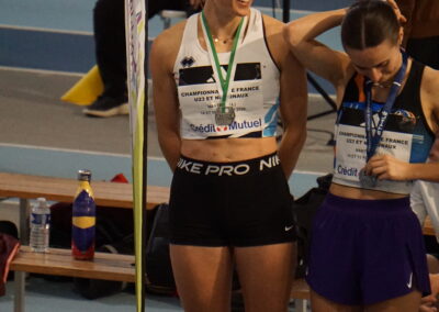 10 athlètes de l’Entente Savoie Athlé se sont rendus le week end dernier à Nantes pour y disputer leurs championnats de France. En « Nationaux », excellents résultats pour 4 athlètes. Sarah Leech franchit 5m98 à son premier essai du concours de saut en longueur, sa meilleure performance de l’hiver ; 3e du concours, elle est médaillée d’argent, étant la 2e Française de ce concours. Laura Wilhelm prend une excellente 2e place sur 800m en 2’07’’96 juste devant Anastasya Delbe qui en profite pour améliorer son record personnel sur la distance en 2’08’’64 ; 4e du 800m, Anastasya monte sur la 3e marche du podium, étant la 3e Française de cette course. Même cas de figure pour le coureur de 400m Isahq Cherroud ; 4e de la finale avec 47’’91, il est médaillé de bronze car 3e Français. Binta Martin est finaliste du triple saut avec 11m86. Sont demi-finalistes, Estelle Guyon-Veuillet, 10e au saut à la perche avec 3m50 ; Margot Mahé, 13e au saut en hauteur (1m55) ; Antoine Vincent, 14e au 60m haies avec 8’’20 en série de qualification. En catégorie « espoirs », Soraya Bougantouche est 6e au saut en longueur (5m67) et Elouan Loullier, 10e au saut en hauteur (1m93).